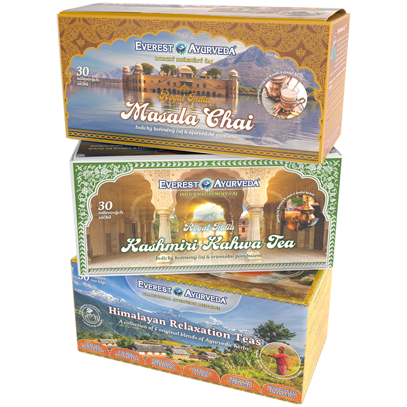 KAHWA thé du Cachemire – boisson traditionnelle « parfumée » du Cachemire à base de thé vert Kangra et d'un délicieux mélange d'épices orientales, qui a des effets stimulants similaires à ceux du café.
