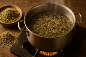 • Les décoctions à base de plantes (kvatha) sont la méthode la plus couramment utilisée et très efficace pour préparer les plantes médicinales. Elles nécessitent de faire bouillir les herbes dans de l'eau chaude à feu doux pendant au moins plusieurs minutes.